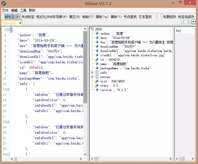 使用HiJson工具并通过此工具快速查看JSON字符串、熟悉JSON的数据结构。针对程序员来说,如果了解了连续字符串对应的JSON的数据组成,便可以快速对JSON字符串进行数据处理。