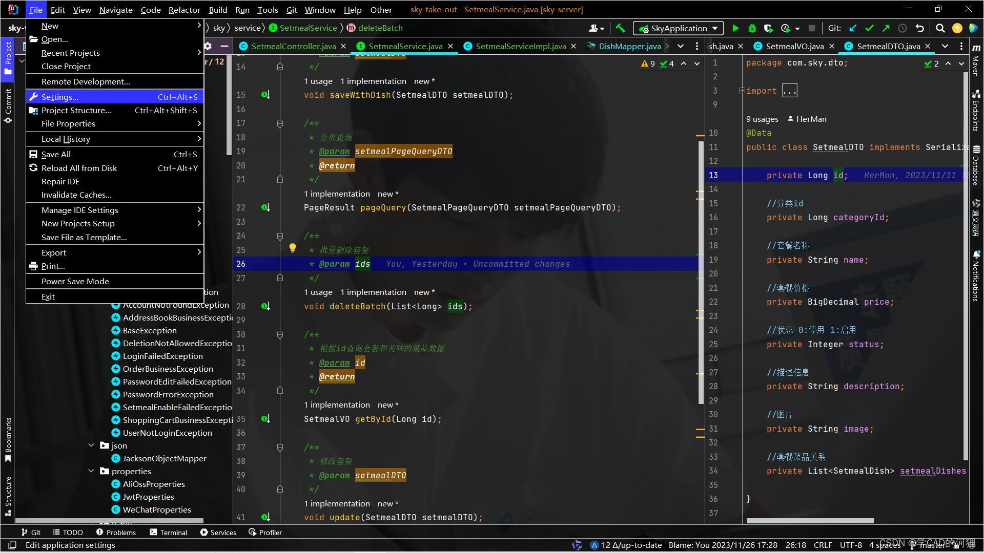 打开IDEA,点击菜单栏中的File--------选择setting...