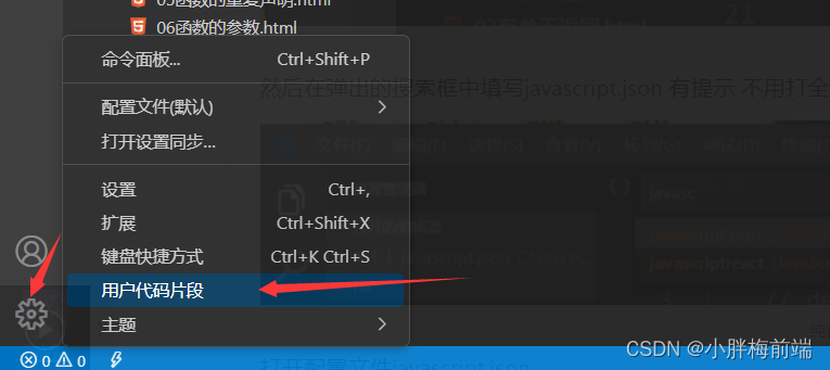 打开配置文件javascript.json