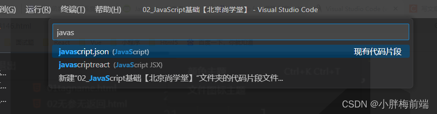 然后在弹出的搜索框中填写javascript.json 有提示 不用打全就行 (会有javascript选中)