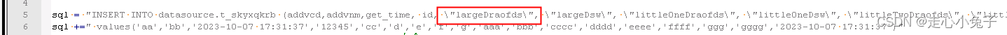 处理:因为postgresql对大小写敏感,而python中执行sql语句的时候会将sql字段全部转成小写,去写入数据库,所以就会导致字段不存在的错误。因此处理的时候可以将驼峰命名的字段加上双引号。问题:python中执行数据插入报错字段不存在,或者不显示报错,直接写入数据失败,可以看看是否因为写入的postgresql数据库,并且字段命名为驼峰式,如果是,那可以按下面的方式处理。