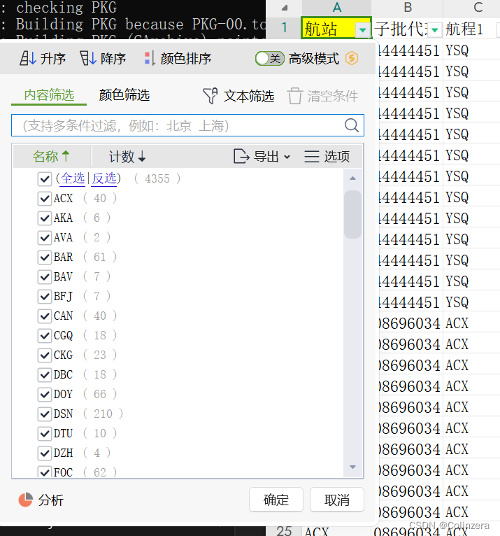 需求:将一个.xlsx文件中,按照表头为“航站”的列进行拆分,每个航站单独保存为一个csv文件,导出的csv文件名为{航站}.csv,同时里面的数据删掉“航站”列,保留其他列。