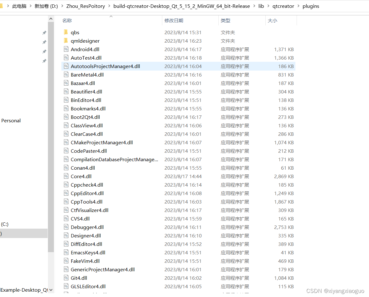 这里以Qt Creator 4.15.2版本的源码为示例进行分析源码结构如下,为了追溯其插件加载过程,从main.cpp入手Qt Creator的插件目录,生成的插件,好几十个呢。