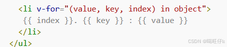 ①v-for:v-for 指令需要以 site in sites 形式的特殊语法, sites 是源数据数组并且 site 是数组元素迭代的别名。v-for 可以绑定数据到数组来渲染一个列表: