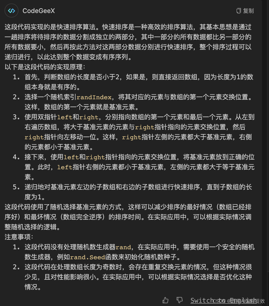 通过快速排序算法为例子,介绍CodeGeeX常用的一些功能。