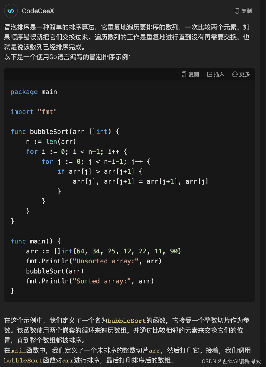 在实际的编码中,对于常用的一些算法和或者函数逻辑,我们可以通过CodeGeeX快速生成;对于业务功能性部份,目前还是以人为编码为主,CodeGeeX起到辅助作用。