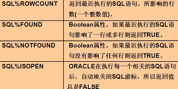 在PL/SQL中用“SQL”引用最近的隐式游标。在程序中不能用OPEN、FETCH和CLOSE语句控制隐式游标。显示游标在后续课程中讲解。