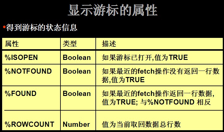 使用%FOUND显示游标属性来判断每一次提取(Fetch)操作是否成功。