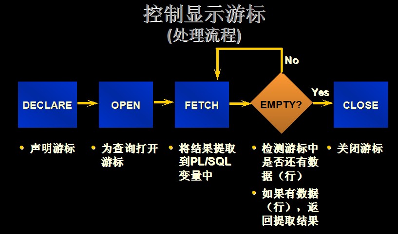FETCH emp_cursor INTO emp_record.ename,emp_record.sal; 、、提取数据