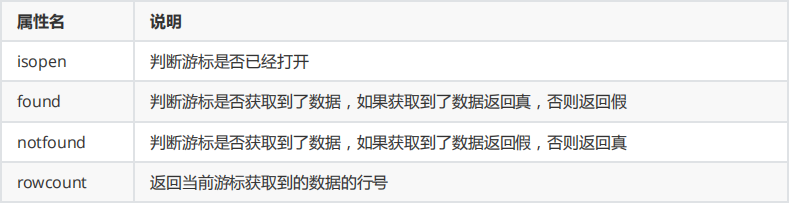 可以使用游标名称%属性名称 来访问游标的属性,游标常用的有四个属性: