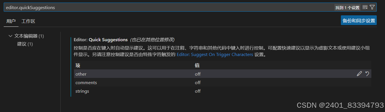 2.2 点击在settings.json中编辑,使用CTRL + F找到"inlineSuggest.enable"将其置为false