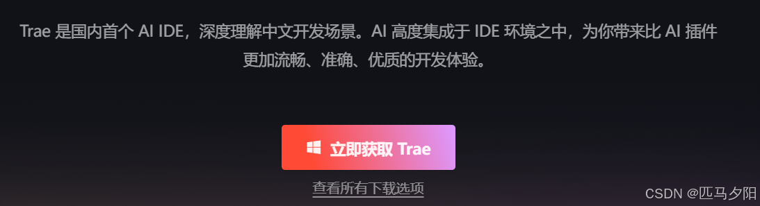 访问 Trae 国内版官网 trae.com.cn,下载适合您操作系统的安装包,目前提供 Mac(macOS 10.15 及以上)和 Windows 版(Windows 10、11),后续还有 Linux 版 。下载完成后,双击安装包按照提示完成安装。