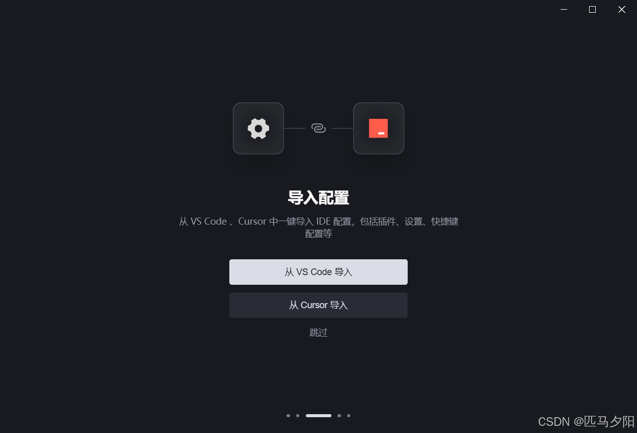 - 若你的电脑中已安装并配置 VS Code 或 Cursor,你可以选择从 VS Code 或 Cursor 中导入配置或者直接跳过。点击 “从 VS Code 导入” 或 “从 Cursor 导入” 按钮,系统将会从对应的 IDE 中获取插件、IDE 设置、快捷键设置等信息并一键导入到 Trae 中,帮助你快速从其他 IDE 切换到 Trae 。