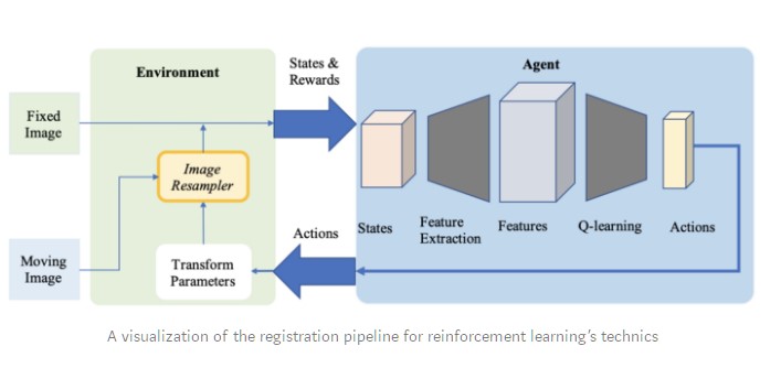 - In 2016, Liao et al. were the first to use reinforcement learning for image registration. Their method is based on a greedy supervised algorithm for end-to-end training. Its goal is to align the images by finding the best sequence of motion actions. This approach outperformed several state-of-the-art methods but it was only used for rigid transformations.