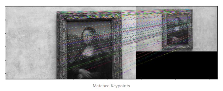 Once keypoints are identified in both images that form a couple, we need to associate, or “match”, keypoints from both images that correspond in reality to the same point. One possible method is BFMatcher.knnMatch(). This matcher measures the distance between each pair of keypoint descriptors and returns for each keypoint its k best matches with the minimal distance.