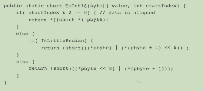- 取出消息前两位之前用了BitConverter.ToInt16函数。这个函数内部做了一些大小端的处理。但是我们可以仿照这个函数手动来处理。