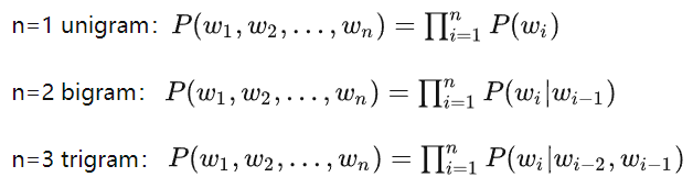 - N元模型(N-gram Model)假定文本中每个词w和前N-1个词有关系,而与更前面的词无关,这样当前词w的概率p只取决于前N-1个词P,这个假设叫做N-1阶马尔可夫假设