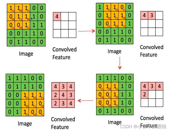 在CNN中,先选择一个局部区域( filter),用这个局部区域去扫描整张图片。局部区域所圈起来的所有节点会被连接到下一层的一个节点上。
