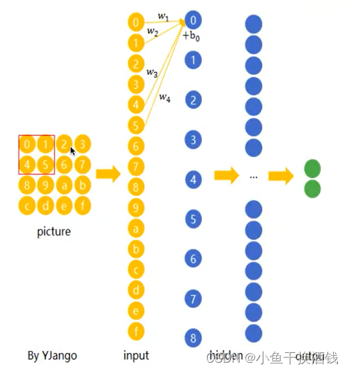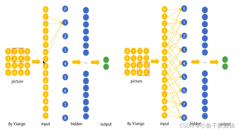 - 卷积网络的最后会将末端得到一个长长的向量,并送入全连接层配合输出层进行分类。