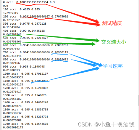 if i % 100 == 0: # 每训练100轮打印一次训练集样本的预测精度