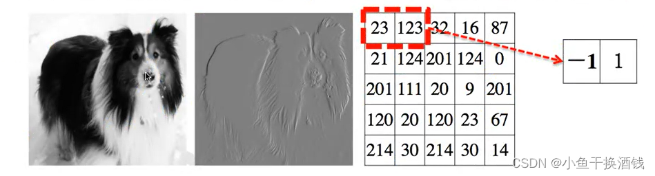 下图(右边像素减左边像素)说明了权值共享是如何提高线性函数在图像边缘检测上的效率的。