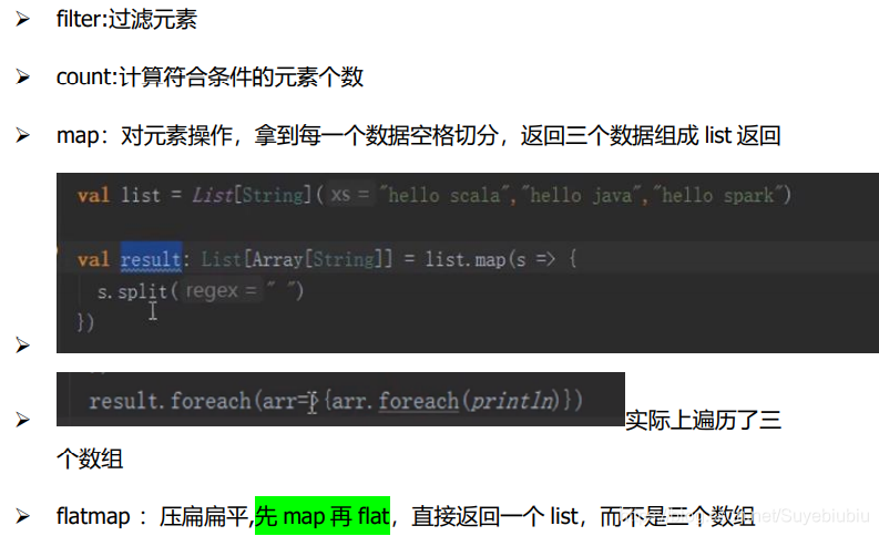 目录1.数组 Array1.1创建数组1.2concat 方法1.3 遍历和其他方法1.4定义可变数组:ArrayBuffer,第一个是后加,第二个是头加,第三个是追加多个2.list2.1 创建 list(不用 new List)2.2 list遍历2.3list 方法举例2.4 list方法总结3.set4.map4.1 map 创建,map 中实际上是一个个的 tuple 二元组形式4.2获