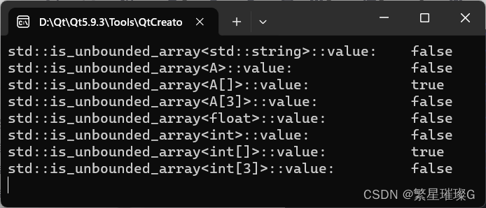 检查 T 是否为拥有已知边界的数组类型。若 T 是有已知边界的数组则提供等于 true 的成员常量 value 。否则 value 等于 false 。检查 T 是否为未知边界数组类型。若 T 是有未知边界的数组类型则提供等于 true, 的成员常量 value 。否则 value 等于 false 。