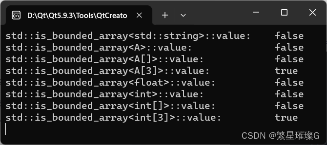 << std::is_bounded_array<std::string>::value << std::endl;