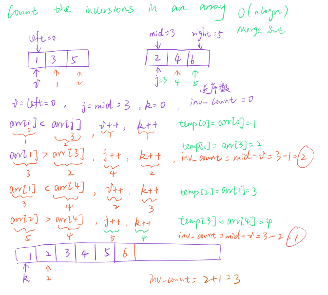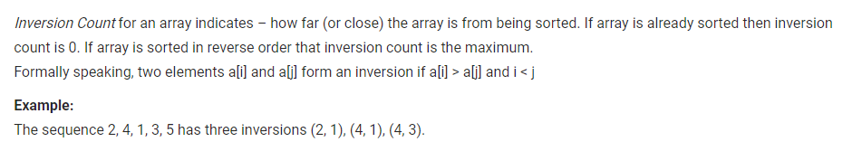 参考链接:https://www.geeksforgeeks.org/counting-inversions/