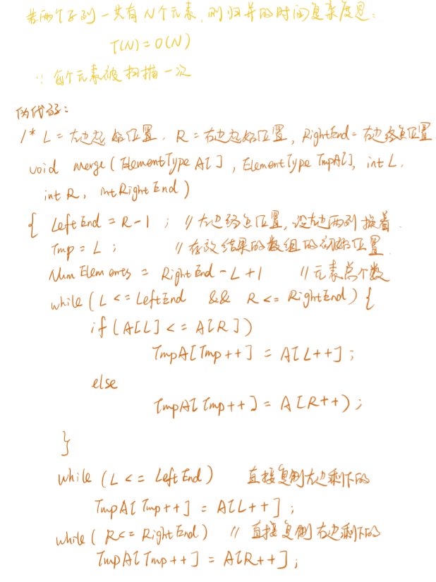 // C++ program to Count // Inversions in an array // using Merge Sort #include <bits/stdc++.h> using namespace std; int _mergeSort(int arr[], int temp[], int left, int right); int merge(int arr[], int temp[], int left, int mid, int right); /* This function sorts the input array and returns the number of inversions in the array */ int mergeSort(int arr[], int array_size) { //归并排序接口 int temp[array_size]; return _mergeSort(arr, temp, 0, array_size - 1); } /* An auxiliary recursive function that sorts the input array and returns the number of inversions in the array. */ int _mergeSort(int arr[], int temp[], int left, int right) { //分-递归 int mid, inv_count = 0; if (right > left) { /* Divide the array into two parts and call _mergeSortAndCountInv() for each of the parts */ mid = (right + left) / 2; /* Inversion count will be sum of inversions in left-part, right-part and number of inversions in merging */ inv_count = _mergeSort(arr, temp, left, mid); inv_count += _mergeSort(arr, temp, mid + 1, right); /*Merge the two parts*/ inv_count += merge(arr, temp, left, mid + 1, right); } return inv_count; } /* This funt merges two sorted arrays and returns inversion count in the arrays.*/ int merge(int arr[], int temp[], int left, int mid, int right) { //合并 int i, j, k; int inv_count = 0; i = left; /* i is index for left subarray*/ j = mid; /* j is index for right subarray*/ k = left; /* k is index for resultant merged subarray*/ while ((i <= mid - 1) && (j <= right)) { if (arr[i] <= arr[j]) { temp[k++] = arr[i++]; } else { temp[k++] = arr[j++]; /* this is tricky -- see above explanation/diagram for merge()*/ inv_count = inv_count + (mid - i); } } /* Copy the remaining elements of left subarray (if there are any) to temp*/ while (i <= mid - 1) temp[k++] = arr[i++]; /* Copy the remaining elements of right subarray (if there are any) to temp*/ while (j <= right) temp[k++] = arr[j++]; /*Copy back the merged elements to original array*/ for (i = left; i <= right; i++) arr[i] = temp[i]; return inv_count; } // Driver code int main() { int arr[] = { 1, 20, 6, 4, 5 }; int n = sizeof(arr)/sizeof(arr[0]); int ans = mergeSort(arr, n); cout << " Number of inversions are " << ans; return 0; }