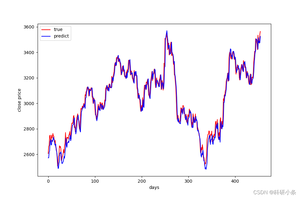 训练epoch=200后的股票收盘价预测效果如下(使用pth参数文件进行测试预测):