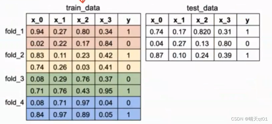 这里有训练数据和测试数据,训练数据用的是4个交叉验证。把训练数据切成4份。测试数据就不用