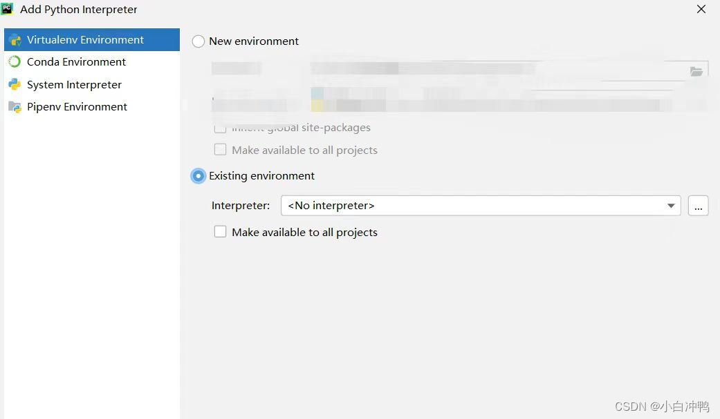 然后在弹出的窗口中选择existing environment,