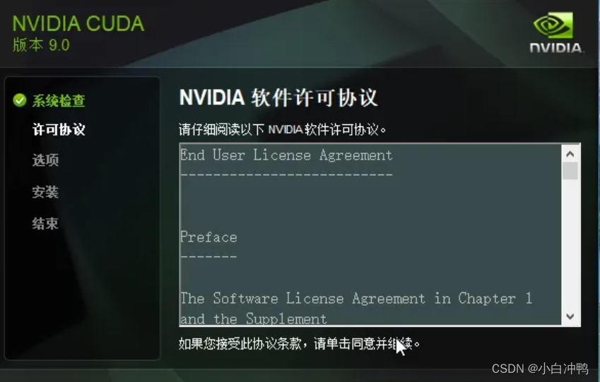 打开下载好的安装包cuda_9.0.176_win10.exe,出现下图界面(刚打开时会有一个较长的等待时间)