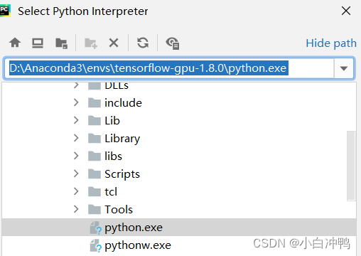 选择anaconda/env/tensorflow-gpu-1.8.0目录下的python解释器,