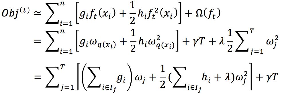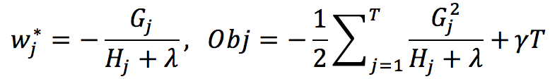 其中w为叶子的权重,Obj为取极小值时目标函数的值。