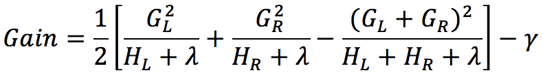 分裂增益的计算为:分裂之前目标函数的值减去分裂之后目标函数的值:
