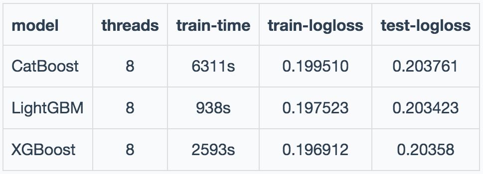 从实验的结论来看,在精度方面基本差不多,但在速度上CatBoost表现最差,LightGBM表现最优。