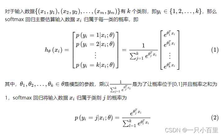 Softmax回归(Softmax Regression)是一种常见的多分类模型,可以用于将输入变量映射到多个类别的概率分布中。softmax回归是机器学习中非常重要并且经典的模型,虽然叫回归,实际上是一个分类问题