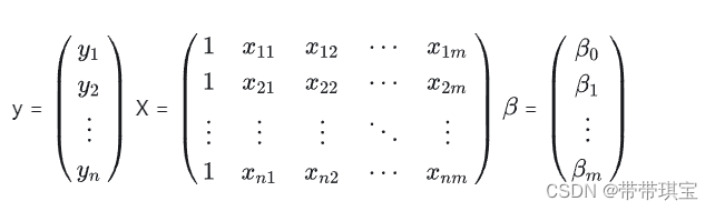 此时有 ,X 为矩阵,y 与 β 为列向量(理解为矩阵也一样),做乘法
