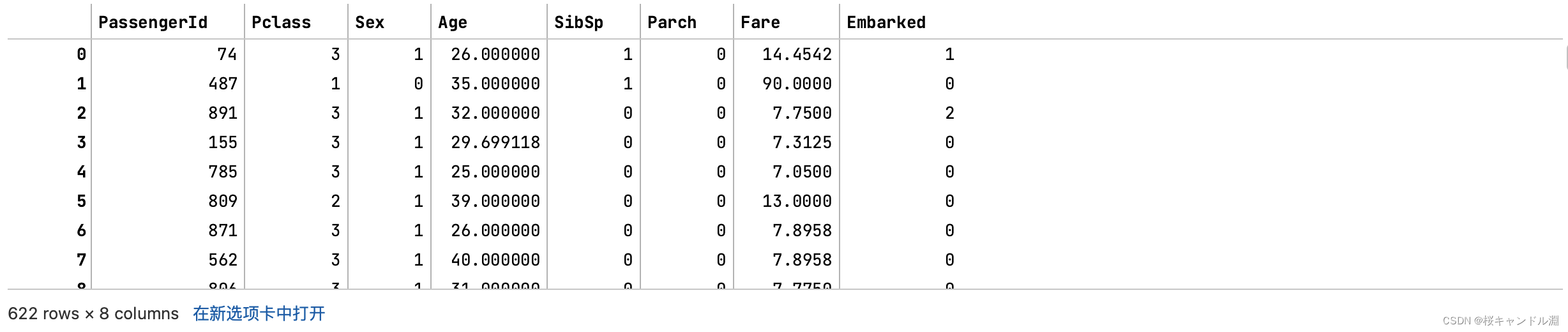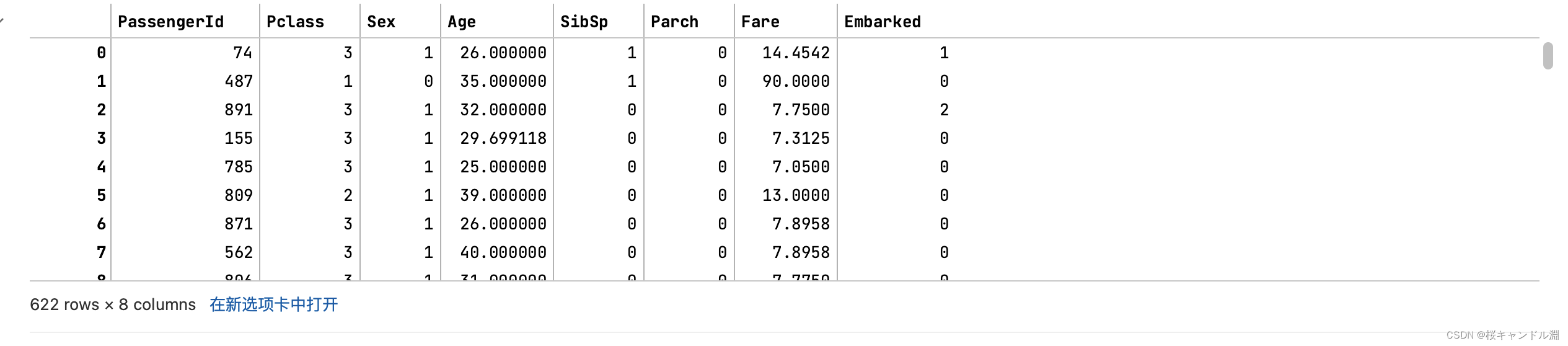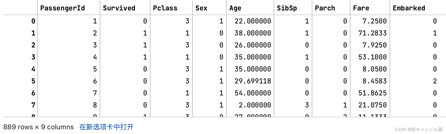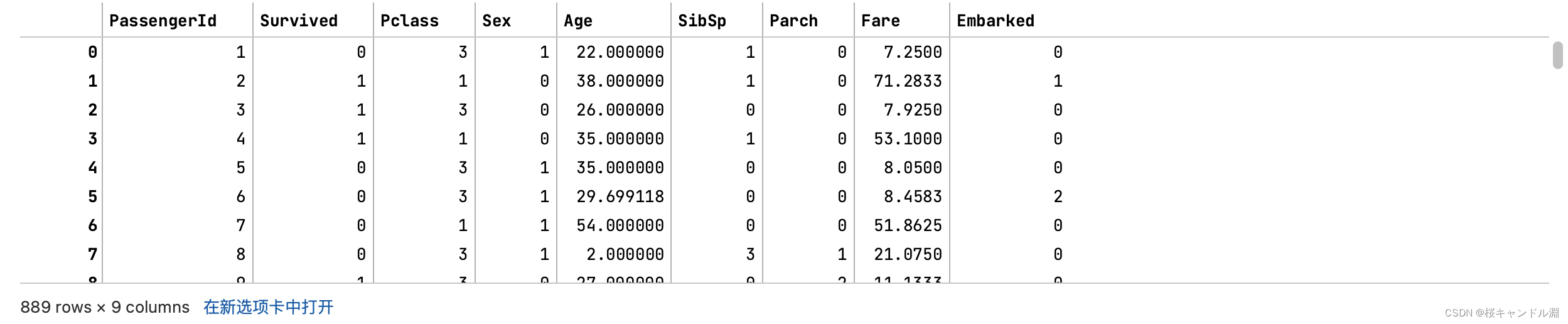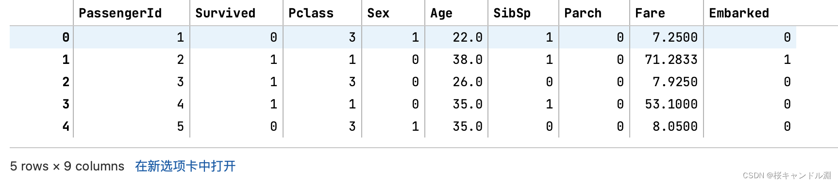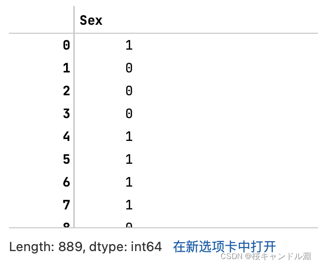 这时我们Sex列的数据就全部被转换成了0,1,男的是1,女的是0
