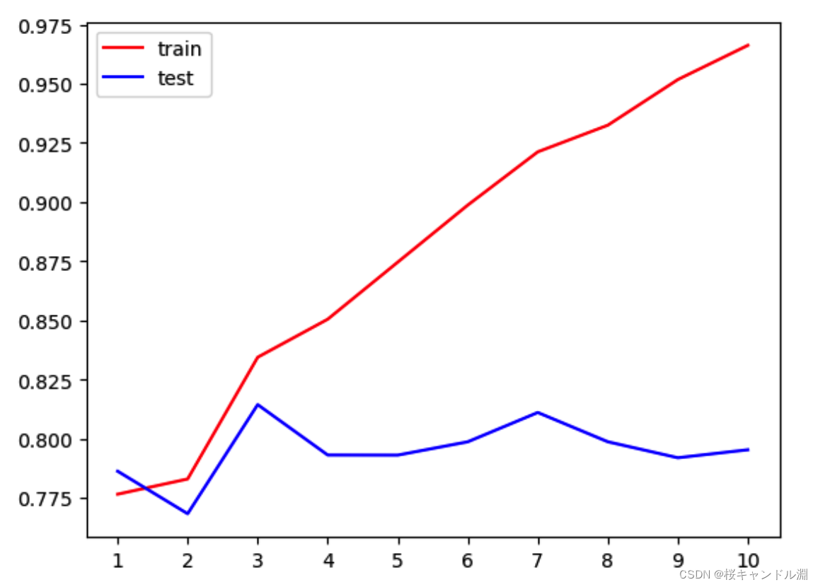 #因为通过这样的数据对比,我们训练集的曲线高于测试集的曲线很多,我们就知道模型是过拟合的