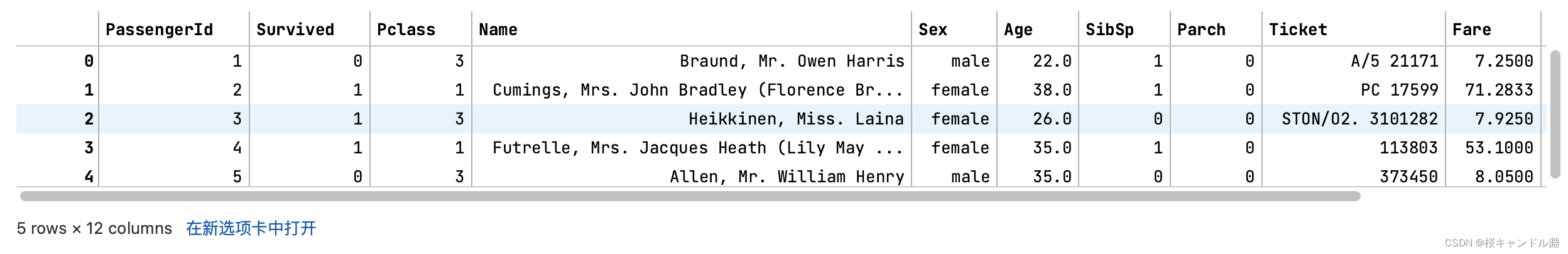 #查看这张表的前n行数据data.head(n),n不写默认是5