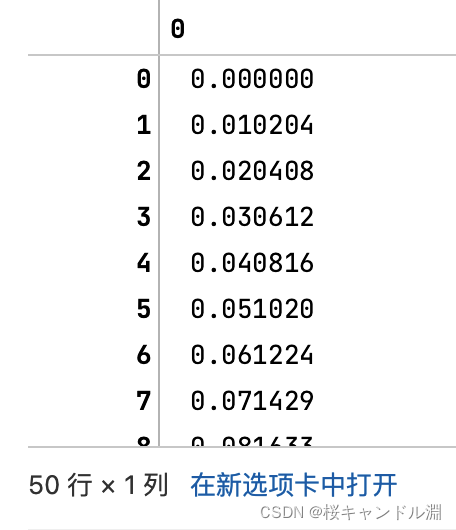 #下面的代码就是在0-0.5之间取50个有顺序的随机数(从小到大排列,但是两个数之间的间隔不一定相同)