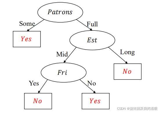 一、前言我们今天来讲一讲决策树的第一课:简单的决策树我们的背景是这样的:你准备去一家餐厅吃饭,但是餐厅已经满了,你想要知道应不应该等待餐厅出现空位。表格如下:ALT:这附近还有合适的餐厅吗BAR:有等待区可以等候吗FRI:是否是周五PATRONS:有多少人正在吃饭PRICE:价格是否昂贵RES:是否有预约?TYPE:什么菜系EST:预计的等待时间WILLWAIT:是否要等待二、简单的决策树那我们就