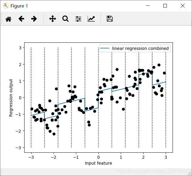 这里第一个箱子包含特征取值在 -3 到 -2.4 之间的所有数据点,第二个箱子包含特征取值在 -2.4 到 -1.8 之间的所有数据点,以此类推。