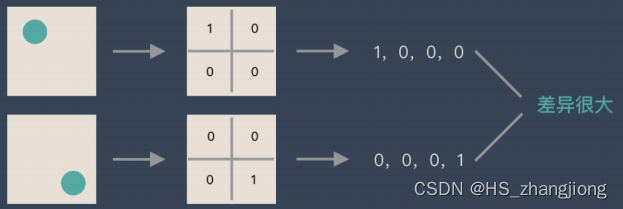 假如有圆形是1,没有圆形是0,那么圆形的位置不同就会产生完全不同的数据表达。但从图像的角度来看,图像的内容(本质)并没有发生变化,只是位置发生了变化。