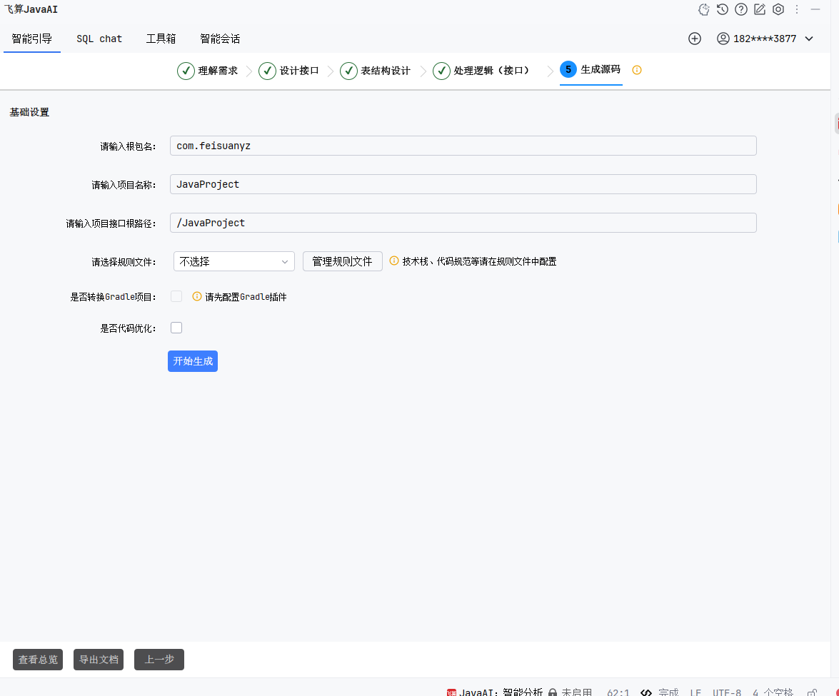 飞算JavaAI支持从0到1搭建项目,我测试了一个Spring Boot项目: