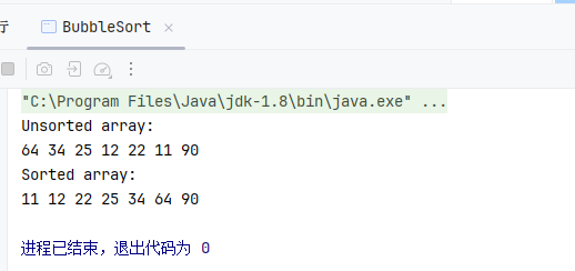 这段代码定义了一个 BubbleSort 类,其中包含一个静态方法 bubbleSort 用于对整型数组进行排序。main 方法用于测试这个排序算法,并打印出排序前后的数组。printArray 是一个辅助方法,用于打印数组的内容。