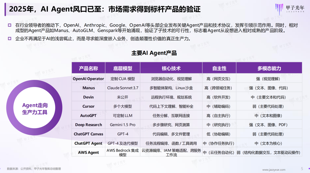 传统的AI应用,如Chatbot(聊天机器人)和Copilot(副驾驶),其本质仍是辅助工具。在这些模式下,人类依然是工作的主体,需要发出明确指令,并对AI生成的内容进行修改和确认。AI Agent则实现了根本性的跃迁。它被定义为能够独立思考并采取行动的AI系统,AI承担了绝大部分工作,而人类的角色转变为目标的设定者和结果的监督者。这种从“辅助”到“主导”的转变,标志着AI Agent正式成为企业